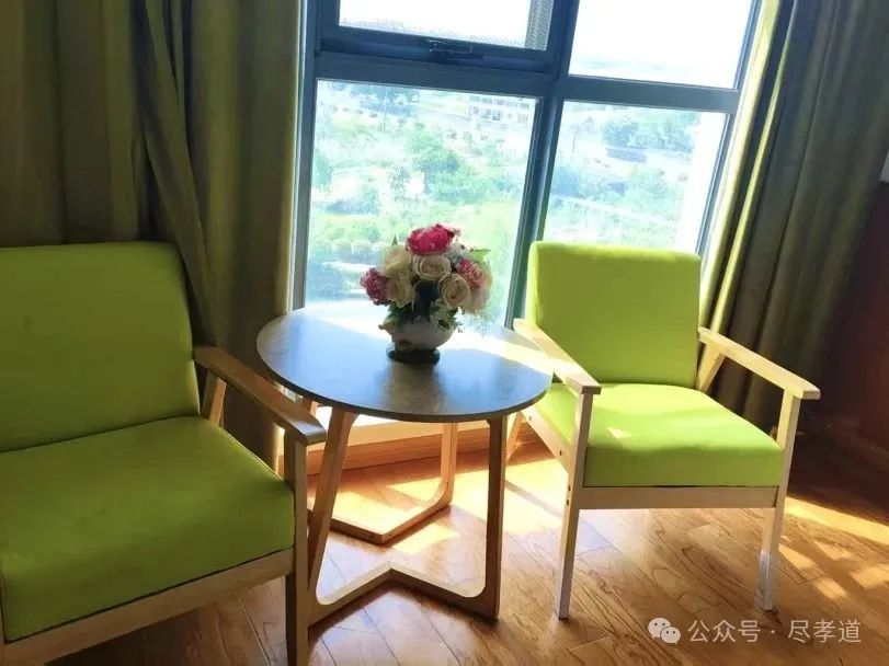 常州天宁尽孝道颐养中心为方便长者生活,公共区域配备专用医护电梯、无障碍通道,设有活动大厅、阅读角、护士站、康复室、治疗室等。设三人间与双人间,房间内配备防滑地胶、吸氧装置、呼叫器、空调、24h热水、彩电、小冰箱、护理床、小夜灯等。